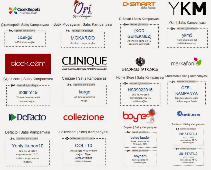 Markalara ait indirim kuponlarını ve kodlarını netlioo hesabınıza girdiğinizde görebilirsiniz. Bu kodlar size alışveriş sırasında direk olarak indirim sağlamaktadır. Aşağıda bazı markalara ait indirim kodları gösterilmiştir.